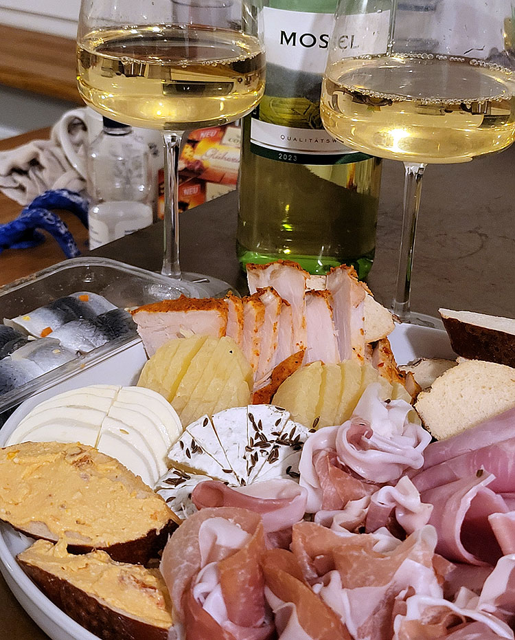 Муж недавно в своем инстаграме перечислил главные плюсы и минусы Германии. Первым плюсом вписал "вино и сыры". И да, иногда мы ужинаем в Германии с вином. (ну, и с сыром, конечно)