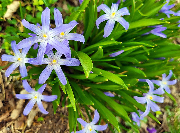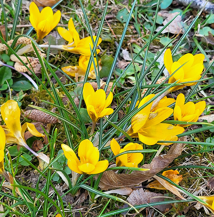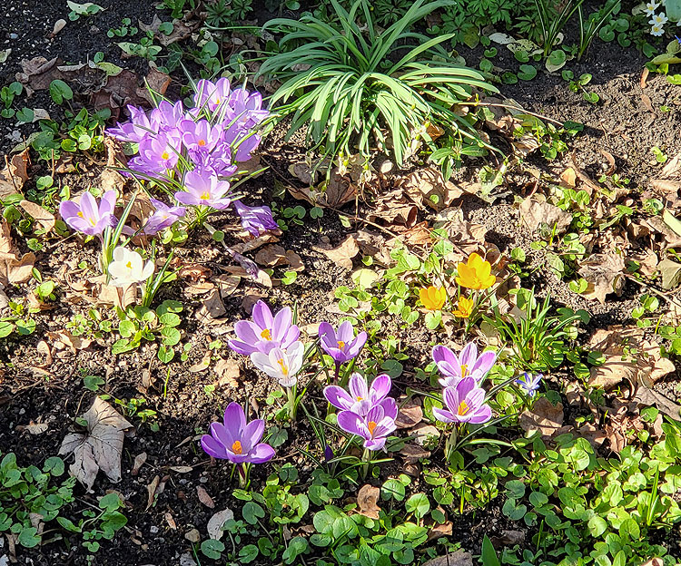Почему-то цветут ровно в тех местах, где были подснежники. Тоже абсолютно самоходом цветут, как в Омске одуванчики и ромашки.