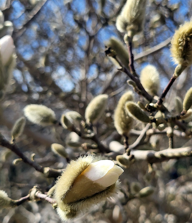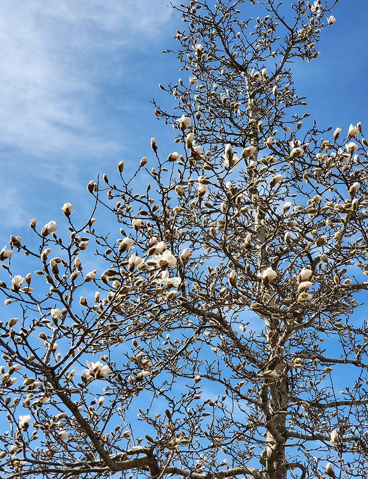 - Если честно, я бы ее не признала. Какая-то это не такая магнолия, как была в Испании или в Сербии. Вот так выглядит, пока цветы не проклюнулись. Пока не проклюнулись, мне казалось, что на вербы похоже, только очевидно не вербы.