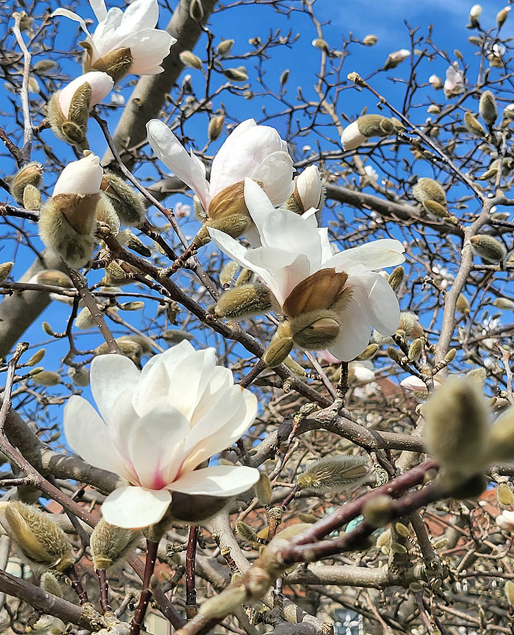 (Теперь-то я знаю, что это звезчатая магнолия, а в Сербии была магнолия лилиецветная, наверное (хотя, скорее, там тоже не один вид магнолий)). - Но вообще очень красивая. Сами деревья сильно не похожи. А вот цветы -- прямо видно, что магнолия.