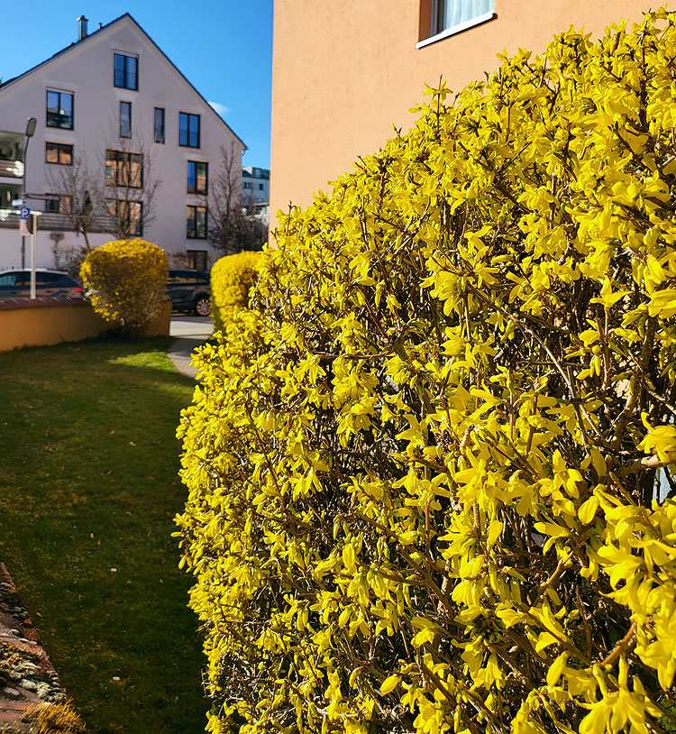 Очень красиво цветет. Кусты желтой шапкой покрывает. Особенно красивы те кусты, которые сформованы. Круглые отдельностоящие или в виде изгороди.