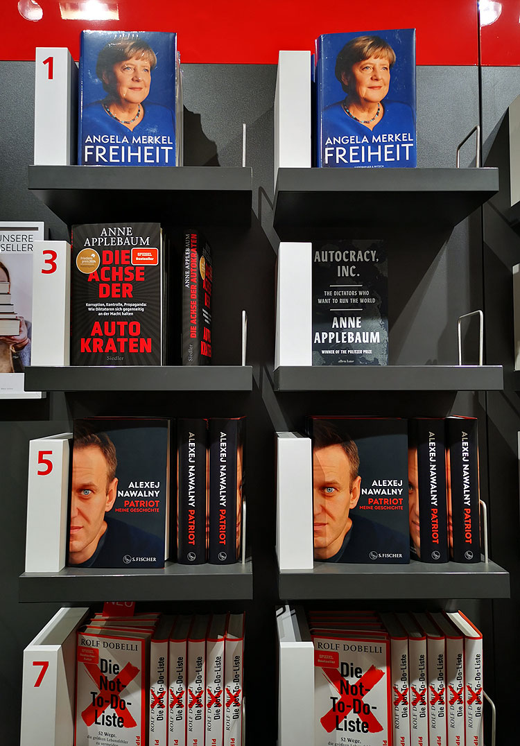 В Германии Навального можно найти до сих пор. Но уже точно не на стендах, а просто среди других книг. В Испании или в Италии Навального не заметила. - Особенность Германии: много книг с подписями на обложке не по-немецки. Часто это название на языке оригинала. (Хотя внутри вся книга на немецком).