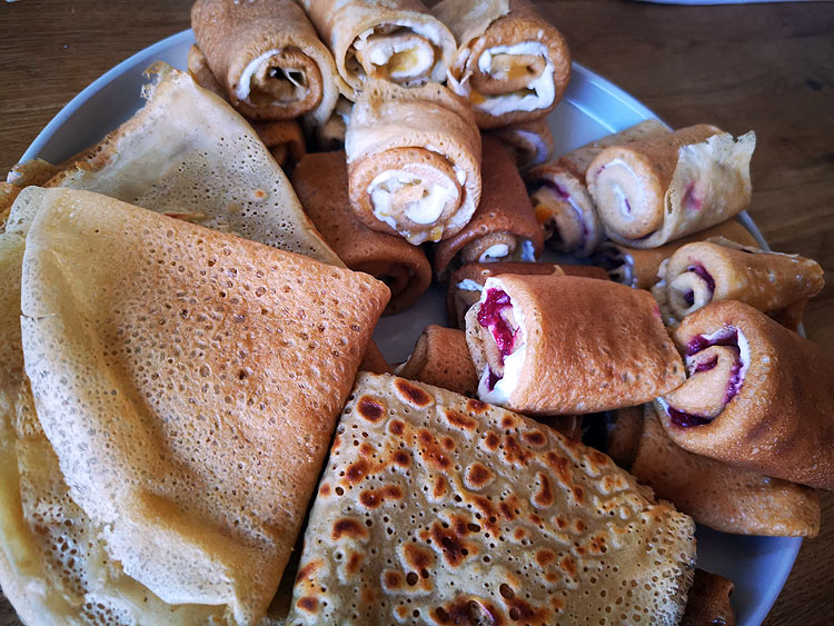 На фото выше видно, что часть блинов нафаршировала творожком с вареньем.