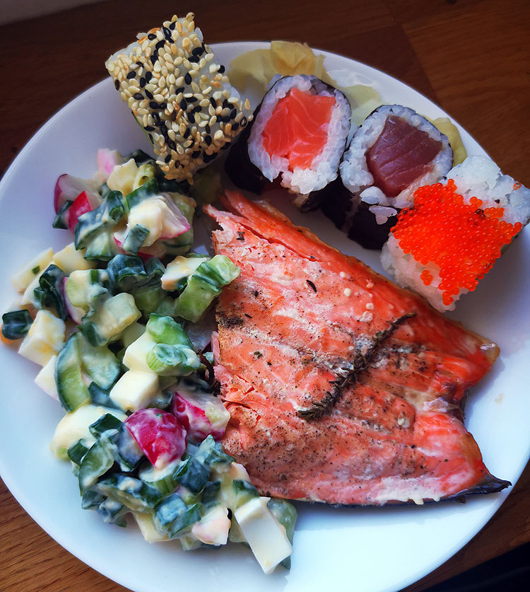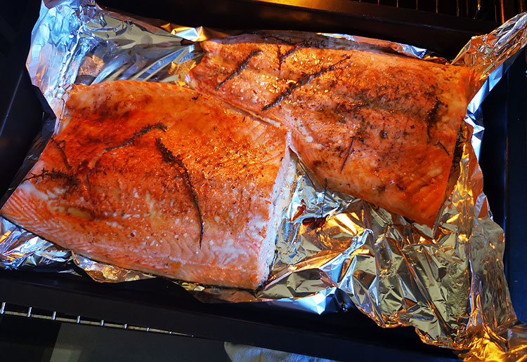 Рыба семга с веточками тимьяна, выросшими на балконе. Веточки можно было не брать.