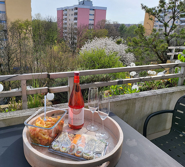Так замечательно. У нас на балконе цветет лаванда, цвели вот еще пару дней назад одуванчики – и греет солнышко. Короче, на балконе реально все вкуснее, чем в доме.