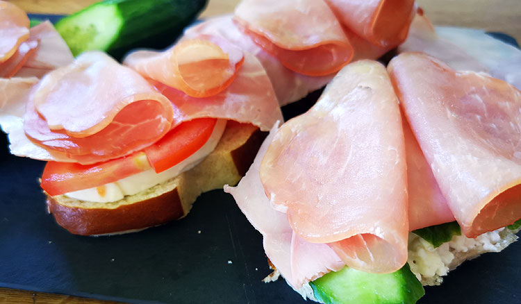 Вообще, в нашей семье хлеб обычно не водится. Мы его достаточно редко покупаем и достаточно редко едим. Но тут мы ходили с ребятами в Альпы -- и брали с собой перекус. А перекусить что-то такое, чтобы еще не тяжело с собой поднимать на высоту около километра -- мы решили, что бутерброды хорошо подойдут.