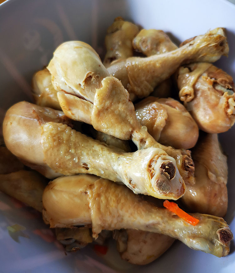 Когда подавала суп деткам – отрывала мясо от костей, и подавала без костей. Конечно, так удобнее есть. Мужу – когда как. А себе всегда просто ножки кидаю – а обгрызть можно по ходу дела.