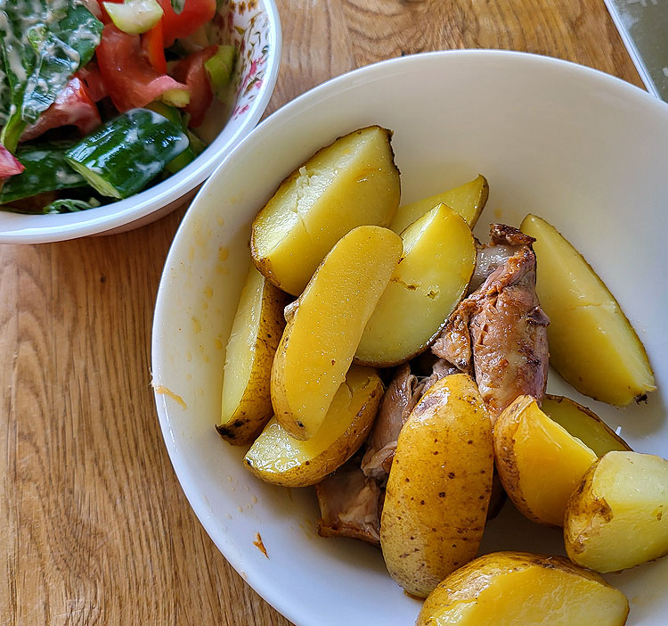 Это у меня рулька с картошкой. И там виднеется один из салатов, которые показывала выше.