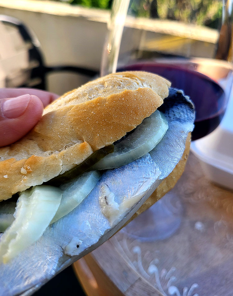 Хотя нет, вот вам еще один. Селедка и маринованный лук.