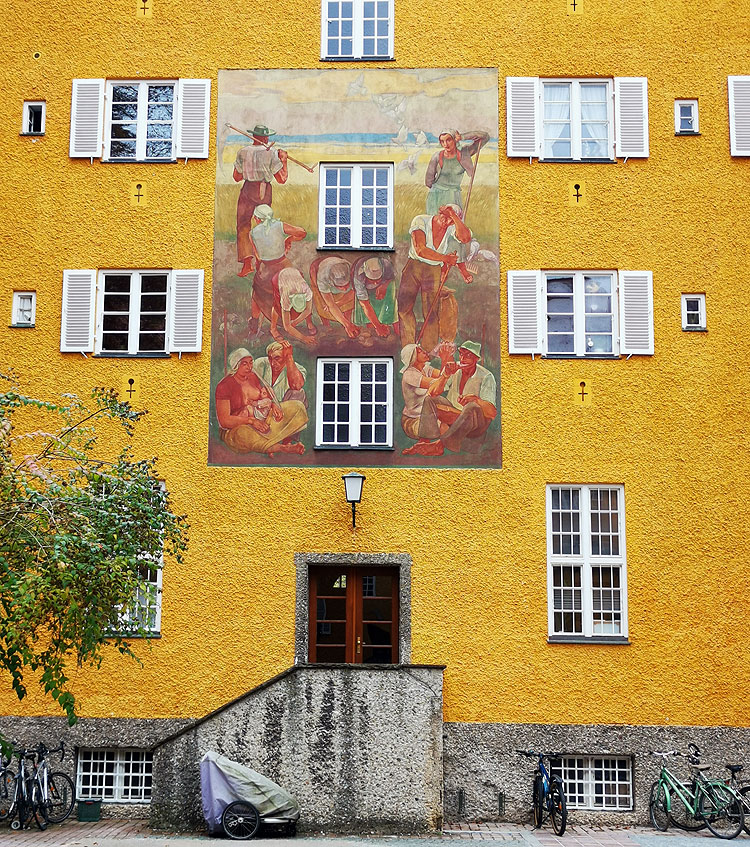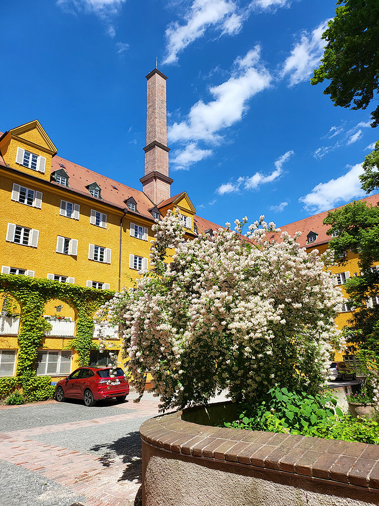 Бернхард Борст был известным немецким архитектором. В 1920-каком-то году (вскоре после Первой мировой) у Борста была своя строительная компания в Мюнхене, для которой он купил хороший такой участок земли. И решил, что кроме, собственно, мастерских, хорошо бы построить домишко для сотрудников. Он даже устроил конкурс среди архитекторов – но идеала не добился. Плюнул на все, и спроектировал квартал самостоятельно.