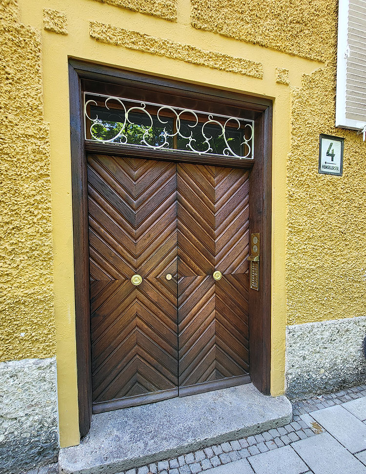 Внутрь квартир я пока не попадала, могу только гулять по кварталу. Но кое-что подглядеть – все равно интересно. Например, вот такие двери.