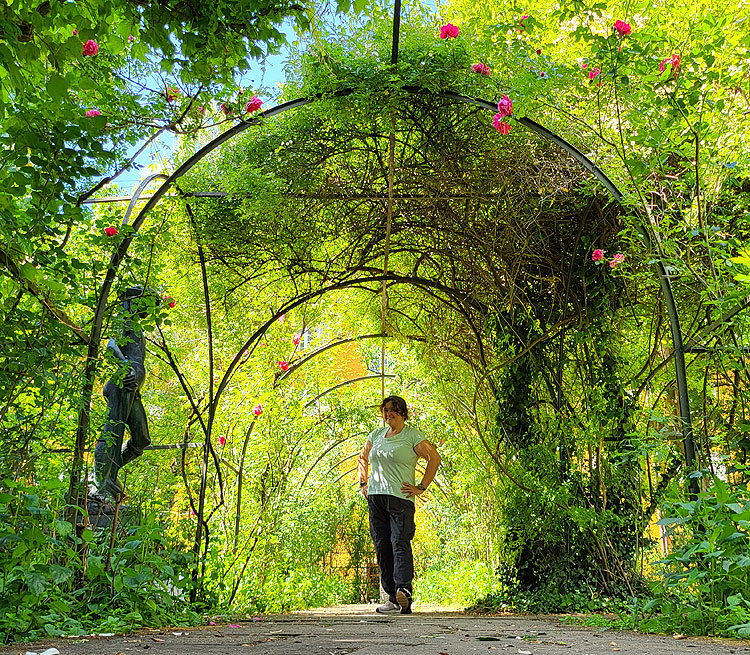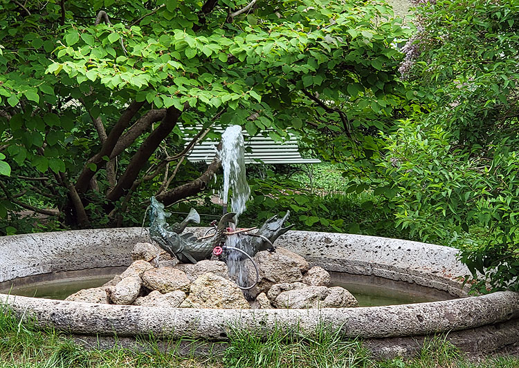 Еще розы-розы, зелененькое все и вдали – фонтан.