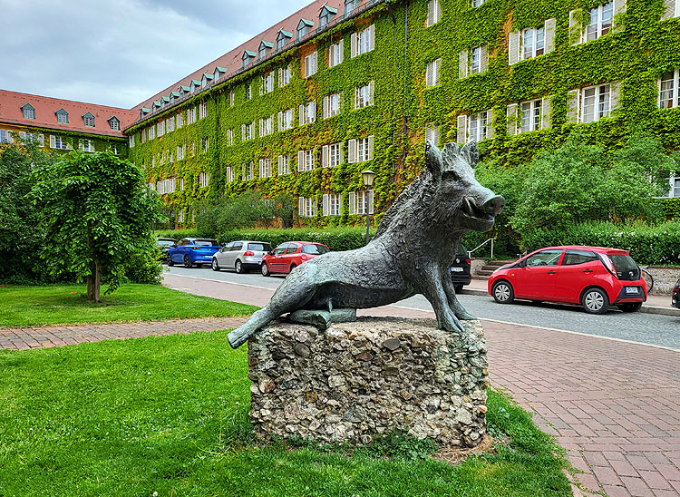 Вот у этого кабана есть брат-близнец в центре города, возле музея охоты и рыбалки. У того кабана блестит пятак, а у этого – нет.