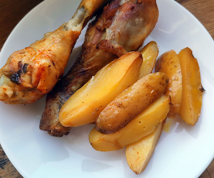 Как вы могли заметить: я давно в запекание картошку не чищу, только тщательно мою. Конечно, с такой картошкой, как была у меня в детстве (половина гнилая, половина с ростками, половину просто так лучше выкинуть) такой номер не пройдет. Но теперь ведь вся картошечка продается крепенькая и ровная. Вот ее достаточно просто вымыть, чистить не обязательно.