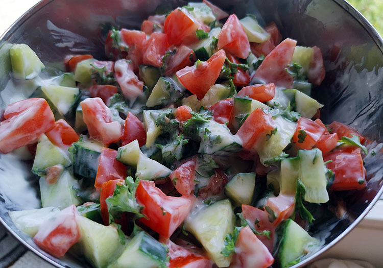 Это другой ужин (я же говорила, что два раза подряд фахитас готовила?). Тут видно еще тот самый Бавария Блю и самый простой овощной салатик.