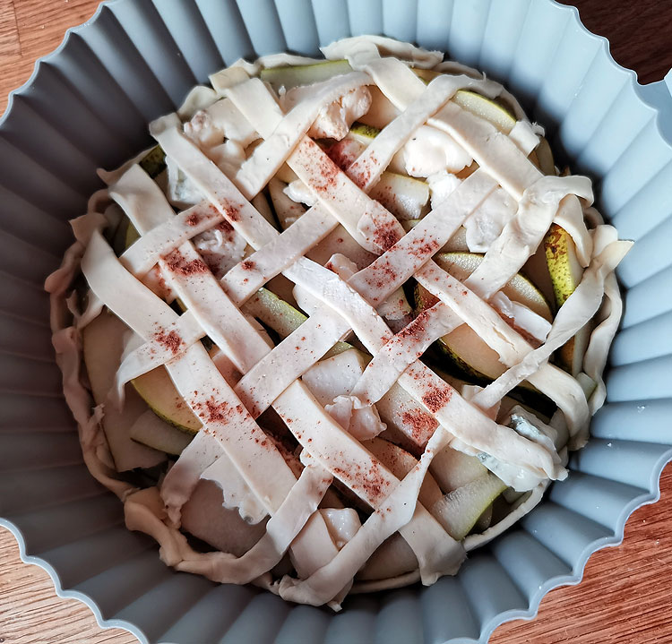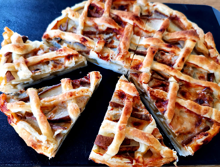 Вообще, это интересный пирог, я ожидаю, что он может как сильно понравиться, так и сильно не понравиться. Готовится он супер-легко, но вот ингредиенты не сказать, чтобы сверх-дешевые. Если у вас случайно горгонзола пропадает – можете поэкспериментировать.