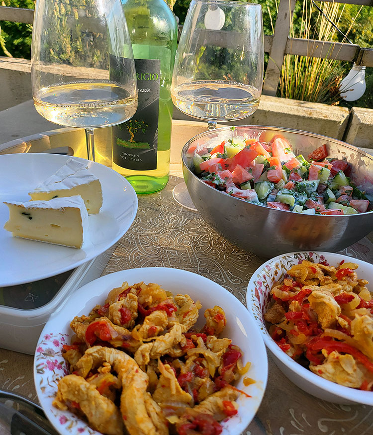 Некоторый обед на балконе. Хотя муж настаивает, что обедать на балконе стало очень жарко, иногда удается.