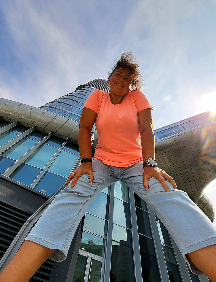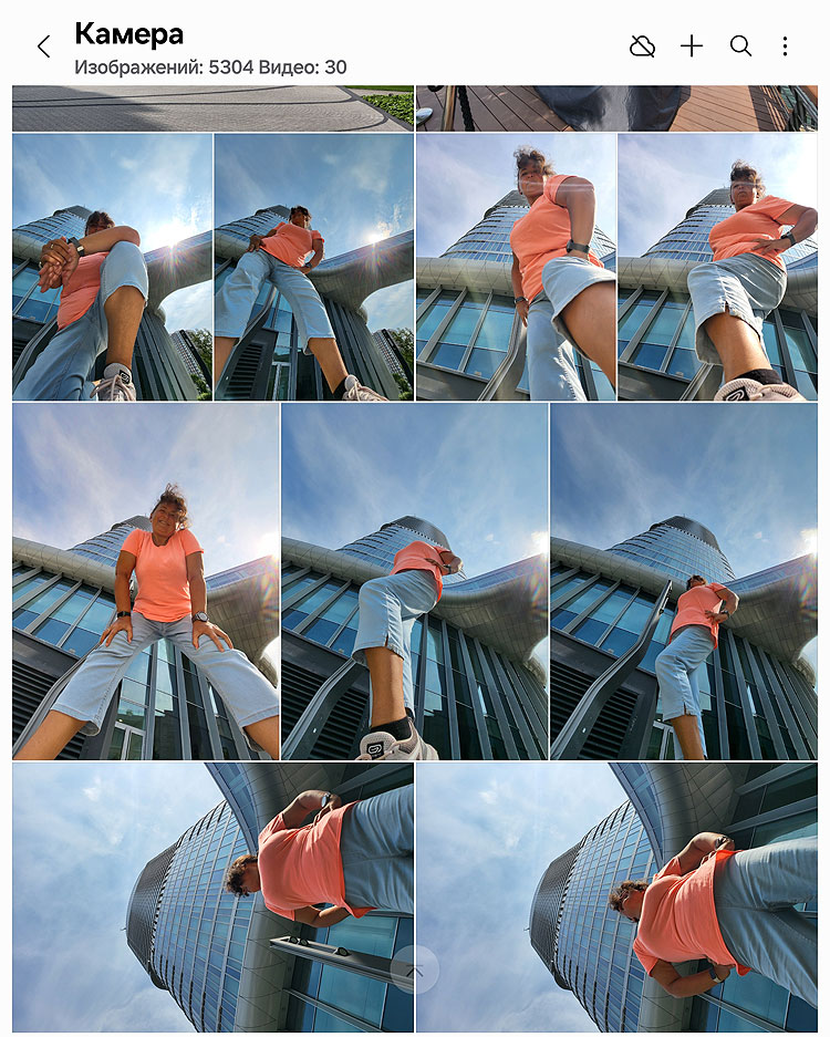 Снизу – для раскладушки очень простой ракурс. Не надо искать подпорку: располагаешь телефон просто на земле, а земля всегда есть. Ну, и лично для меня плюс: у меня тип фигурый такой, что ракурсы снизу сильно выигрышнее, чем сверху.