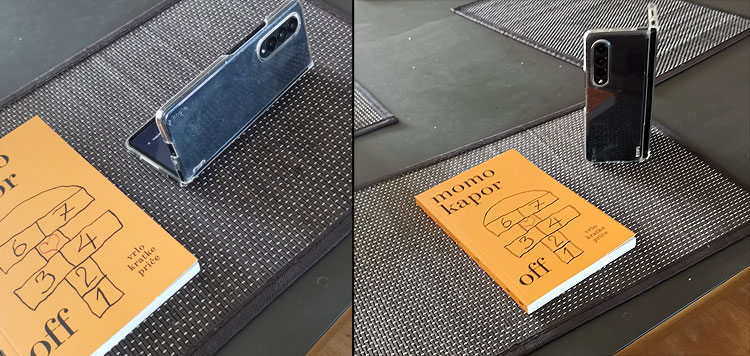 Конечно, то, что телефон – раскладушка, не играет решающей роли. Обычный телефон можно поставить на штатив, соорудить подпорку из подручных средств и так далее. Но когда сооружать ничего не надо и телефон-раскладушка сам стоит устойчиво и в горизонтальном и в вертикальном виде – это дает возможность фотографировать как только в голову пришла мысль сделать фотку. Не дожидаясь ничего, не таская с собой доп.гаджетов, и не заморачиваясь никак. Шел-шел, поставил телефон на пол или на лавочку – сфоткал.