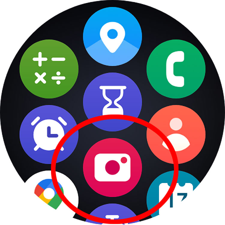 В меню приложений часов надо выбрать вот эту красную иконку с камерой. Это приложение само откроет приложение “камера” на телефоне (если оно было закрыто), ну и дальше там все понятно – большая белая кнопка, в которую жать.