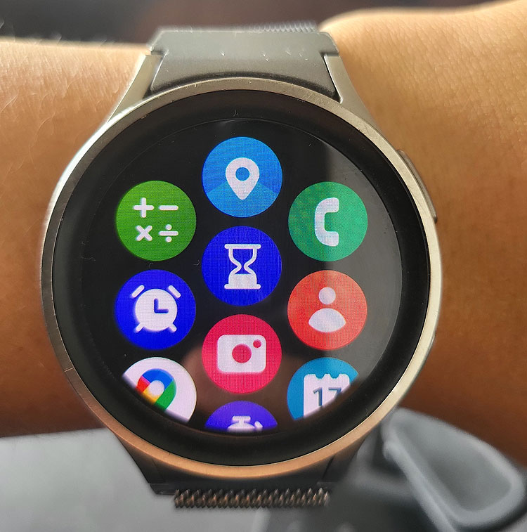 (меню приложений вызывается поглаживанием циферблата снизу вверх; порядок иконок в нем у тебя может быть другой, потому что это ты ведь сама настраиваешь).