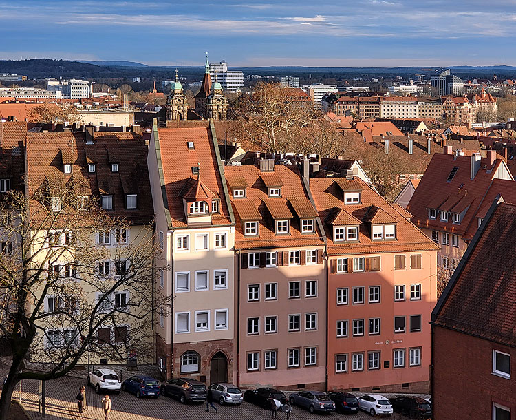 Фото сделано с расстояния километров 7 до Фрауэнкирхе, на фото отчетливо видны две ее башни, а еще видно, сколько домиков с мансардными этажами.