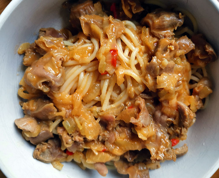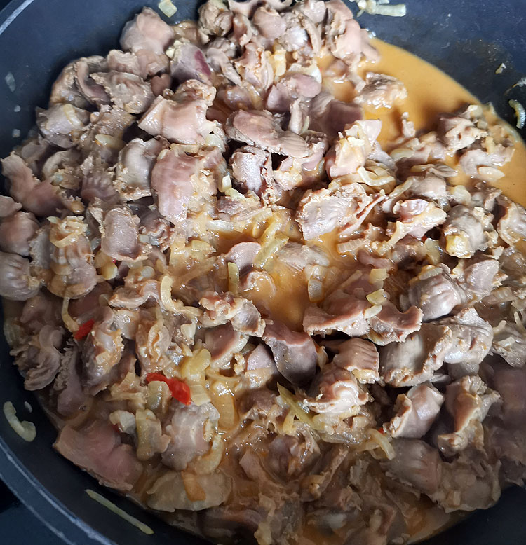 А это -- по фоткам похоже, но на деле -- тушеные куриные желудки.
