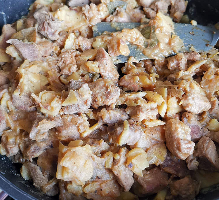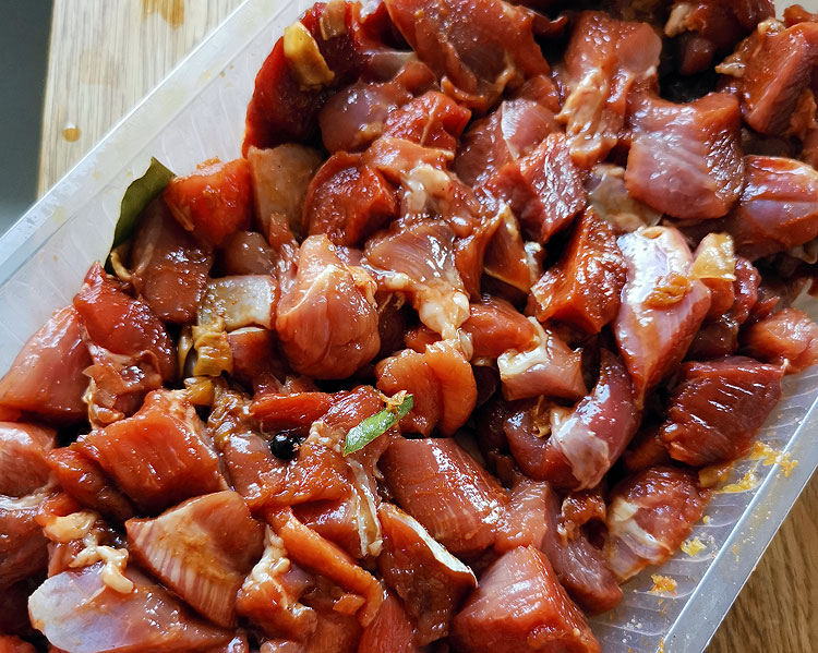 А если мясо не запекать и не жарить -- его можно потушить. И тоже безумно вкусно. Мясо я сначала замариновала. Потому что не знала, что хочу из него делать. А этот маринад в любом случае мясу не повредит, а только улучшит.