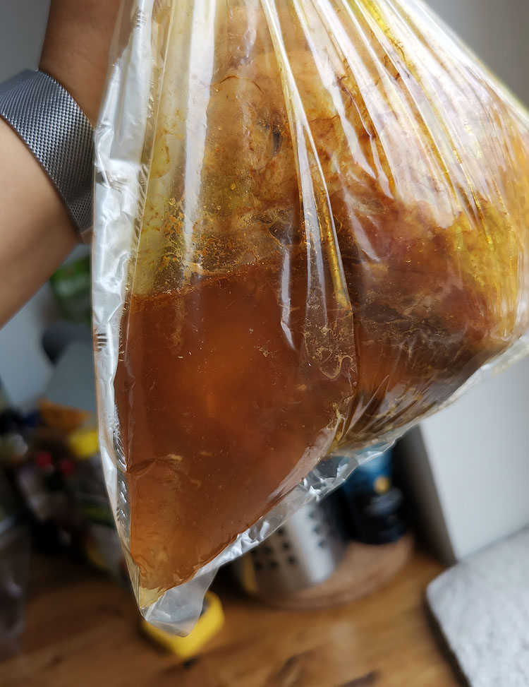 И вот тут, кстати, играет значительную роль запекание в пакете. Когда мясо запекаем в пакете, получаем так: