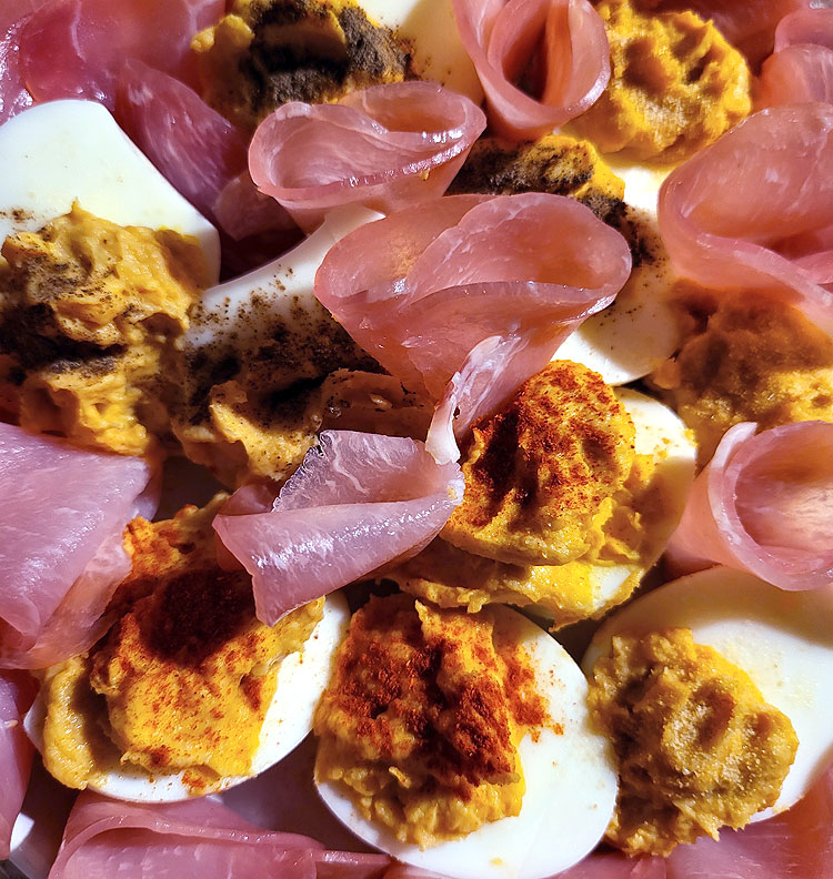 Это известная всем советская закуска. Как ни смешно, оказывается, она есть во многих странах. В Испании фаршированные яйца совсем другие (мне наши больше нравятся), а вот когда мои фаршированные яйца ели друзья из США -- сказали, что у них тоже есть абсолютно такое же блюдо.