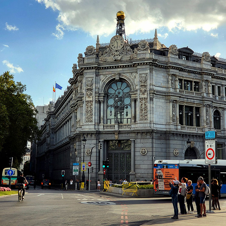 Отдельно в Мадриде интересно искать места из разных известных штук. Вот, например, это банк Испании. Его грабили в сериале “Бумажный дом” (и его тоже).