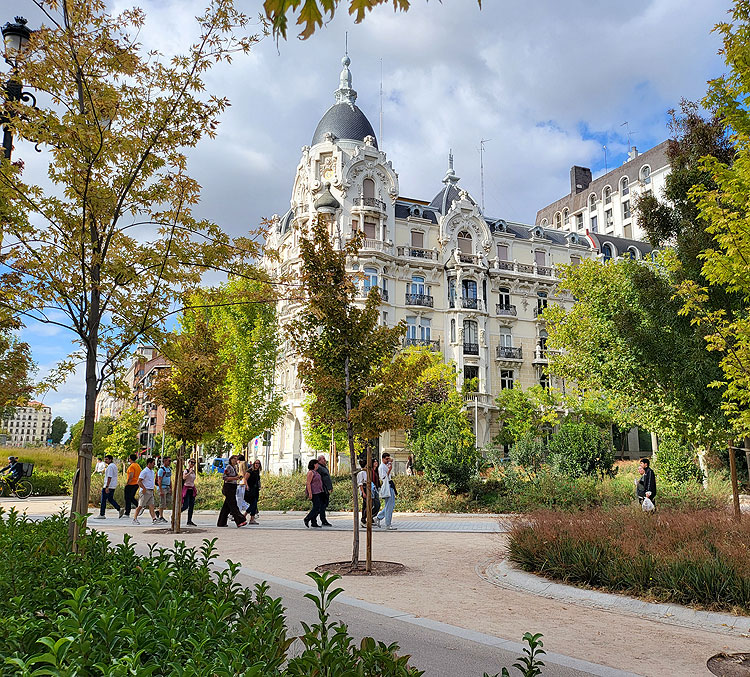 В Мадриде совершенно шикарный огромный приречной парк-набережная. Прямо восторг. Он, конечно, чуть в стороне от туристических толп, потому что сама мадридская река, Мансанарес, – ну, прямо скажем, не особенно впечатляет. Хотя это настоящая полноценная река. Чуть меньше моей родной Омки.