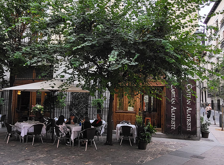 А вот таверна, в которой постоянно торчал капитан Алатристе, таверна “El turco” – это фейк (та, что на фото). На момент написания первых книг в этом месте Мадрида таверны не было. А потом ребята подсуетились, и открыли на описанном перекрестке таверну, которую так и назвали “таверна капитана Алатристе”. В саму таверну мы не ходили )