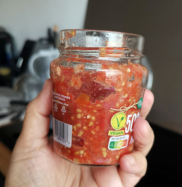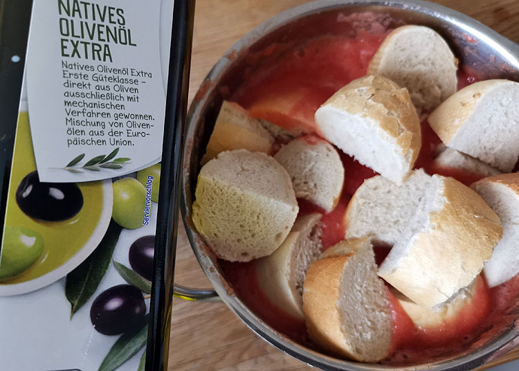 По рецепту нужно 100 грамм оливкового масла. Я уменьшила вдвое, но планирую вообще масло убрать. Оливковое масло обязательно нужно virgen extra – то есть, самое вкусное. Судя по описанию на немецком языке – это должно быть нужное.