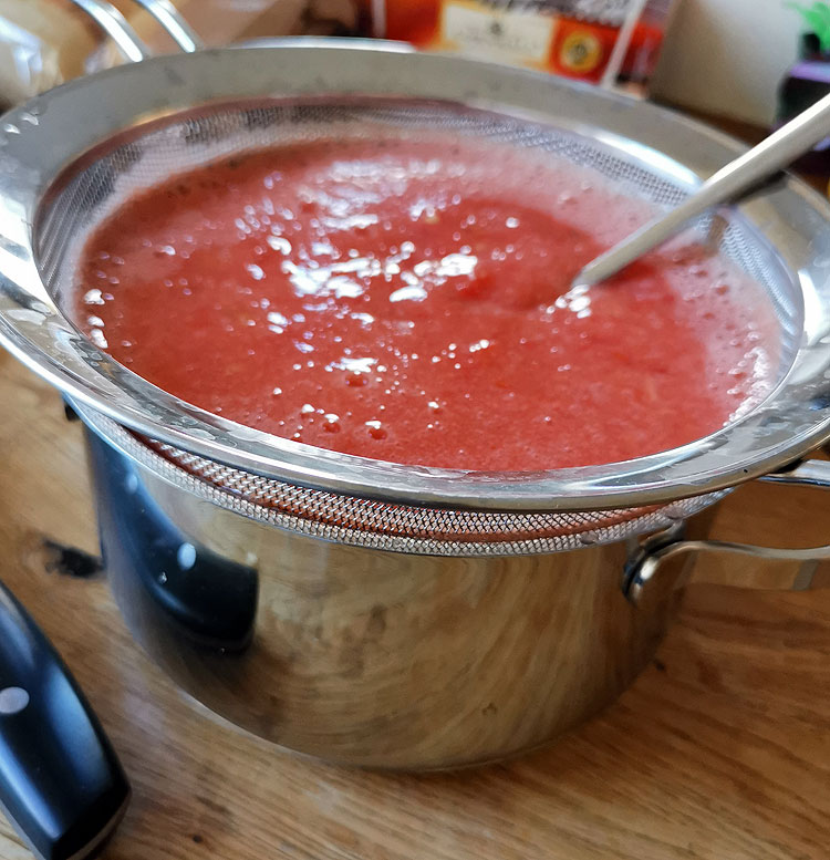 Кстати, хороший момент добавить всякие приправы, какие вы сами хотите. Запишу для себя: из специй я добавляла душистый перец (3 горошины) (пропускала их с помидорами через блендер и сито), и пару капель табаско. Душистый перец очень сильный вкус дал.