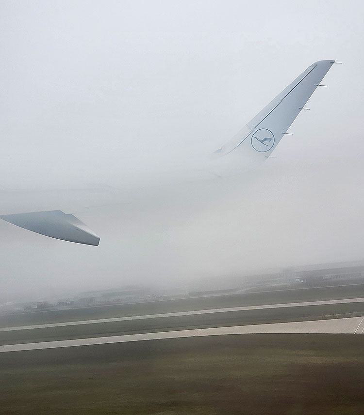 А иногда наоборот – в этой фотке особой красоты нет, просто показан ужасный туман. Мы в таком взлетали. Ууух. Реально было не видно ничего. А самолет взлетал.