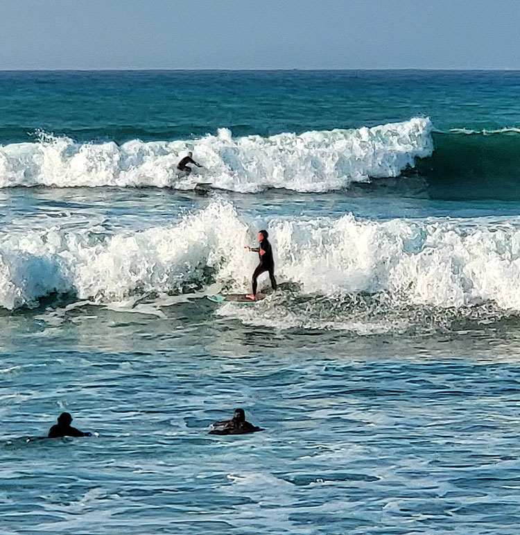 Конечно, серфингисты есть и в Мюнхене (и даже в феврале, ага), для того, чтобы на них посмотреть ехать почти на другой континент не обязательно. И, кстати, в Мюнхене их сфотографировать намного проще – они близко. Фотографировать серфингистов в море сложно )
