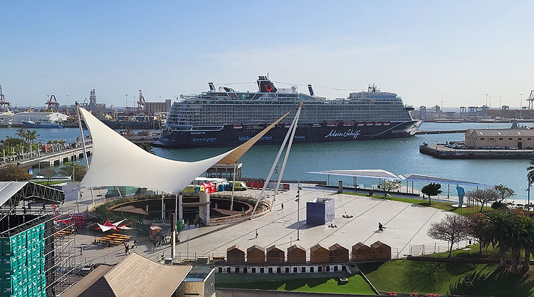 Я очень стараюсь показывать не те же самые фотографии, которые в инстаграме. (Ну, кому надо в инстаграме – можно ведь там посмотреть так? Вот тут полный список постов, мой Дневник путешественника). Поэтому фотку, где видно, что этот корабль огроменный и больше моего 9-этажного дома в Омске показывать больше не буду. Покажу какой симпатичный вид был из нашего отеля.