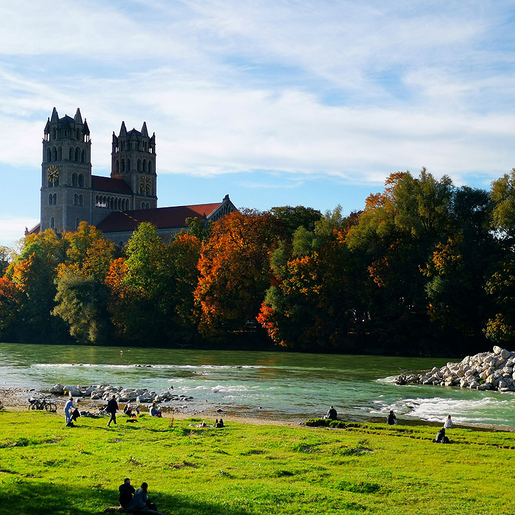 Плавно продолжают парк набережные Изара. Вдоль реки можно гулять во все стороны на много километров. И это очень классно. В некоторых местах непонятно, где кончается английский парк и начинается набережная Изара. А кроме того, у Изара много притоков или отводов, а еще просто в некоторых местах много рукавов. Часть набережных даже носит гордое название “Мюнхенская венеция”.