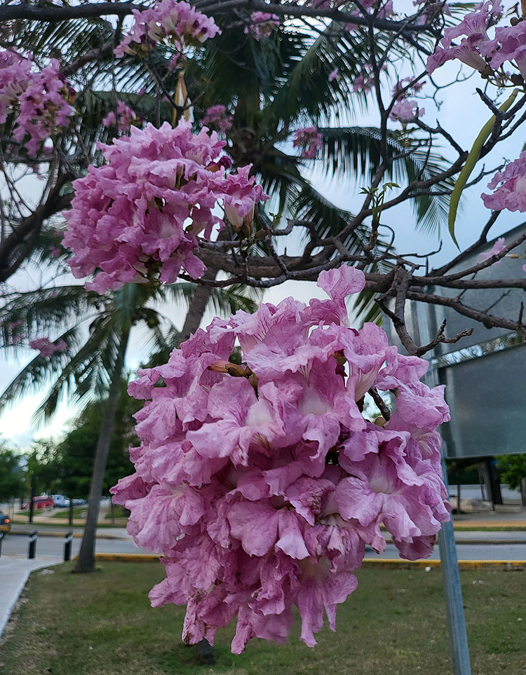 Вообще, цветет, конечно, мало чего. “мало чего” – это больше, чем в Мюнхене за весь год включительно. Но для Канкуна кажется, что мало чего. Вот в Мехико цветет жакаранда – как раз сейчас сезон. Но у нас ее нет.